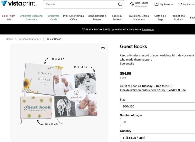 Vista has 3 sizes & 2 page amounts. Fully customisable cover. Says to use fine point or roller ball pens - not markers that will bleed thru pages. (Make sure to provide box of pens - logo ones from vista too that people can take away). https://www.vistaprint.com.au/stationery/guest-books